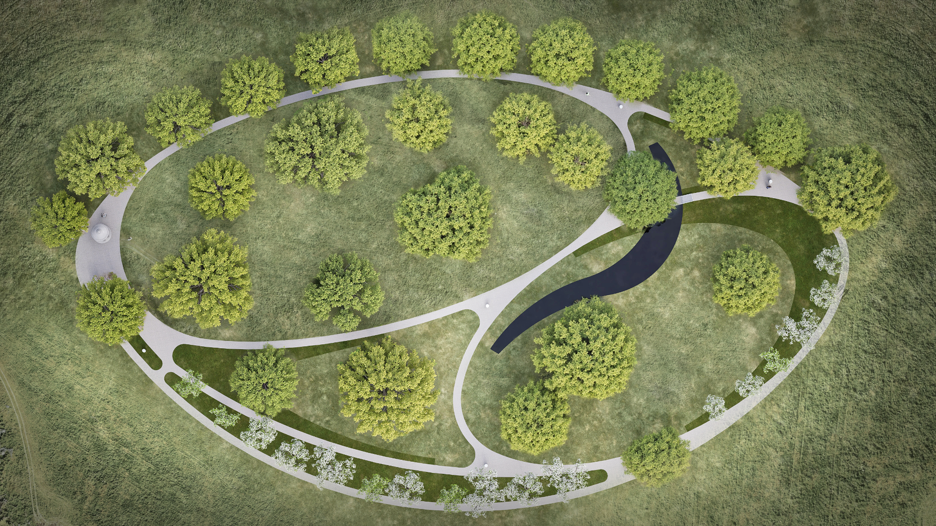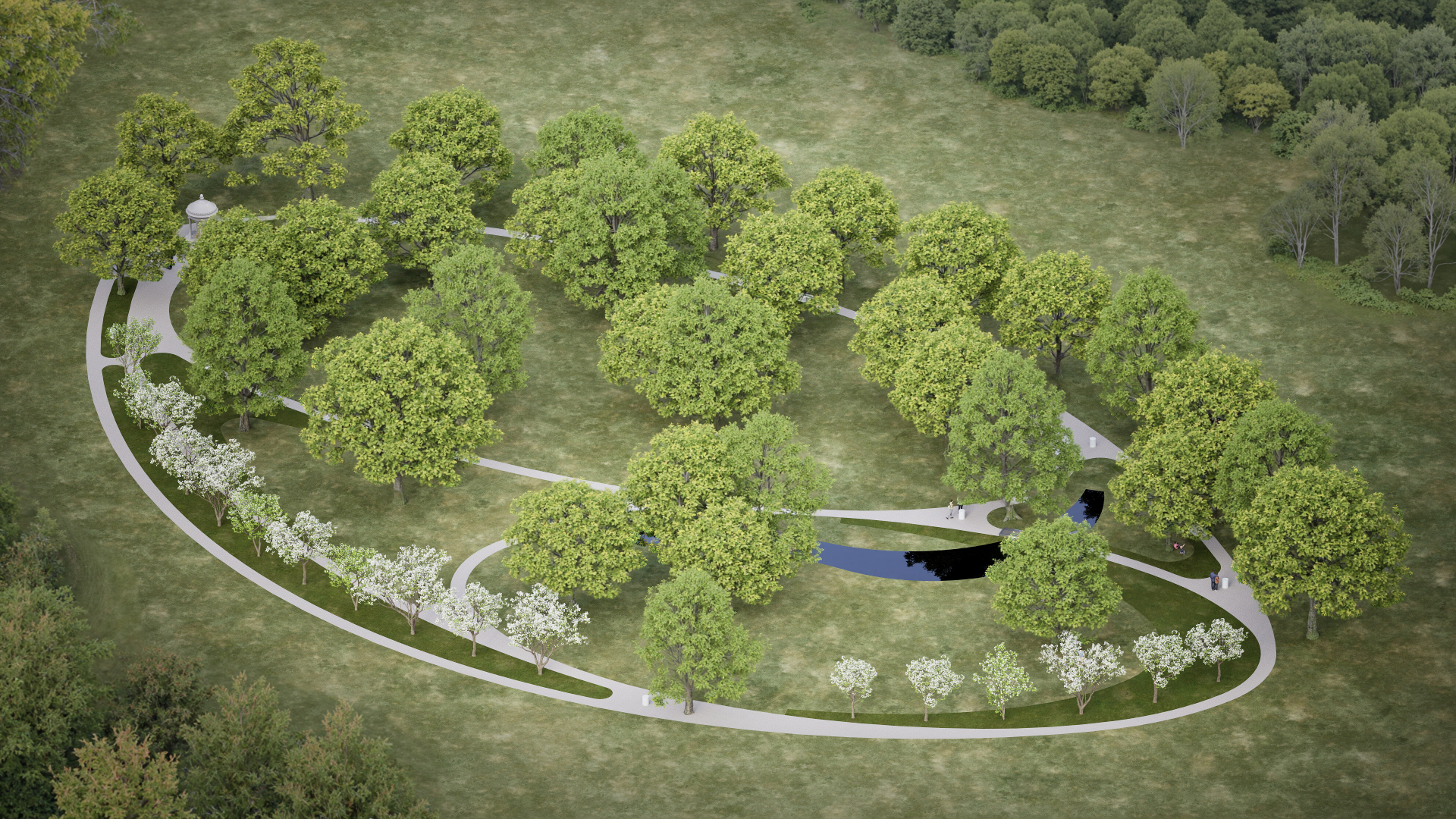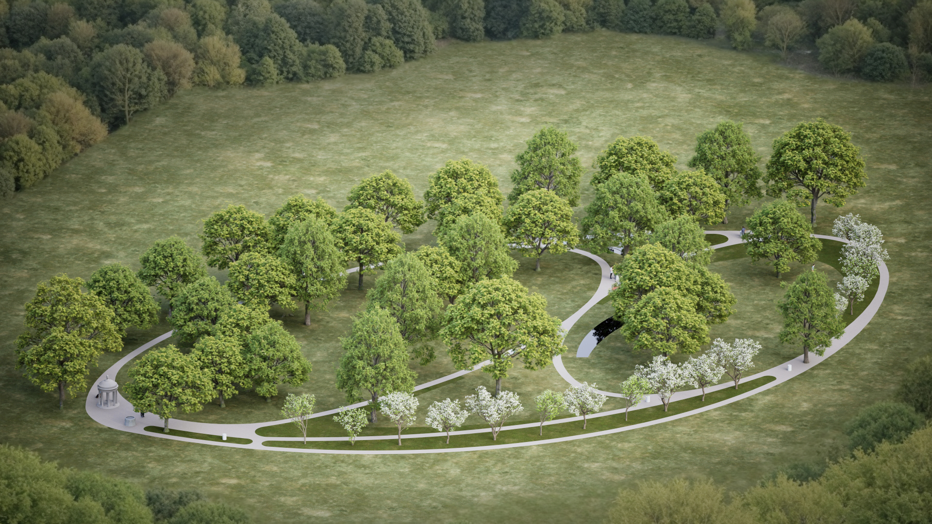 Mária-kegyhely környezetének megújítása, a köz számára megnyitott, látogatható park formájában. A terv az Áldos Hagyományőrző Egyesület megbízásából készült.